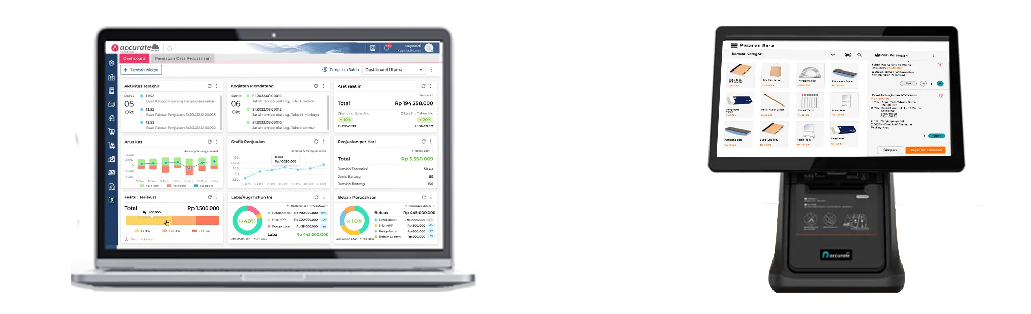 - Transaksi, inventory, pelanggan, karyawan, dan laporan terhubung langsung dengan Accurate Online